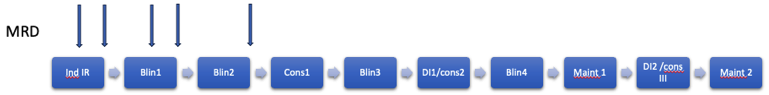 - MRD efter första eller andra Blin ≥ 0.01%. Om kontraindikation allo hSCT och gott initialt svar kan cytostatikadel av IR protokoll övervägas. Vid mätbar men ej kvantifierbar MRD efter andra Blin individuell bedömning (och omkontroll av MRD efter Cons I)
